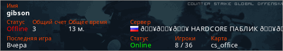 Играет на Counter Strike Global Offensive сервере. Страна: РоссияПервый раз замечен 17:34 16.04.2026