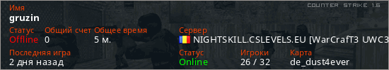 Последний раз был в сети 2 дня назад Игрок с таким ником замечен на 13 серверах