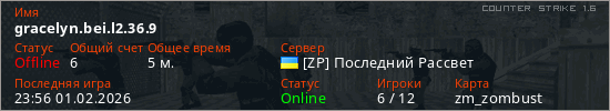 Играет на Counter Strike 1.6 сервере. Страна: УкраинаПервый раз замечен 23:41 01.02.2026