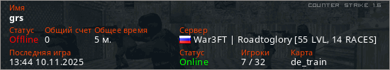 Играет на Counter Strike 1.6 сервере. Страна: РоссияПервый раз замечен 13:30 10.11.2025