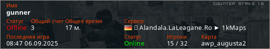 Последний раз был в сети 08:47 06.09.2025 Игрок с таким ником замечен на 9 серверах