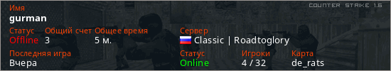 Последний раз был в сети Вчера Игрок с таким ником замечен на 6 серверах