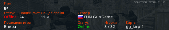 Играет на Counter Strike 1.6 сервере. Страна: РоссияПервый раз замечен 17:36 19.03.2026