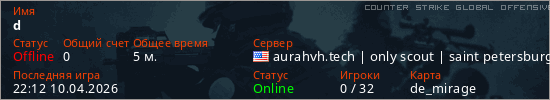 Играет на Counter Strike Global Offensive сервере. Страна: СШАПервый раз замечен 22:10 10.04.2026