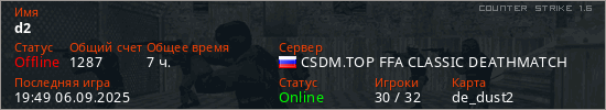Играет на Counter Strike 1.6 сервере. Страна: РоссияПервый раз замечен 23:14 03.11.2020
