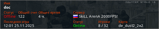 Играет на Counter Strike 1.6 сервере. Страна: РоссияПервый раз замечен 22:39 16.08.2022