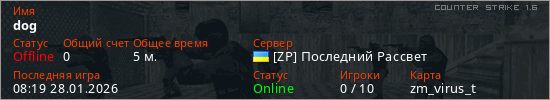 Играет на Counter Strike 1.6 сервере. Страна: УкраинаПервый раз замечен 08:15 28.01.2026