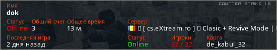 Играет на Counter Strike 1.6 сервере. Страна: РумынияПервый раз замечен 14:13 05.07.2025