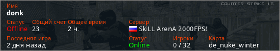 Последний раз был в сети 2 дня назад Игрок с таким ником замечен на 60 серверах