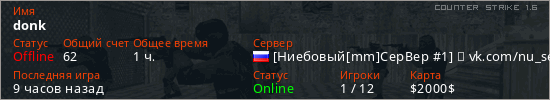 Последний раз был в сети 3 часа назад Игрок с таким ником замечен на 60 серверах