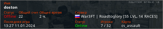Играет на Counter Strike 1.6 сервере. Страна: РоссияПервый раз замечен 09:51 28.06.2022