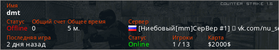 Последний раз был в сети 2 дня назад Игрок с таким ником замечен на 8 серверах