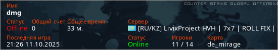 Играет на Counter Strike Global Offensive сервере. Страна: КазахстанПервый раз замечен 20:43 08.10.2025