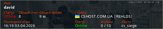 Играет на Counter Strike 1.6 сервере. Страна: УкраинаПервый раз замечен 15:46 03.04.2026