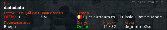 Играет на Counter Strike 1.6 сервере. Страна: РумынияПервый раз замечен 22:30 18.12.2025