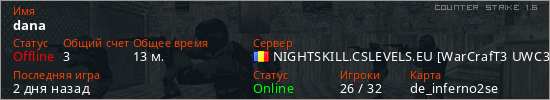 Последний раз был в сети Вчера Игрок с таким ником замечен на 12 серверах