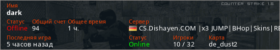 Последний раз был в сети 2 часа назад Игрок с таким ником замечен на 41 сервере