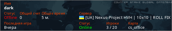 Играет на Counter Strike Global Offensive сервере. Страна: УкраинаПервый раз замечен 21:05 10.03.2026