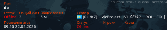 Играет на Counter Strike Global Offensive сервере. Страна: КазахстанПервый раз замечен 09:30 22.02.2026