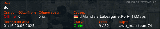 Играет на Counter Strike 1.6 сервере. Страна: ГерманияПервый раз замечен 01:10 20.06.2025
