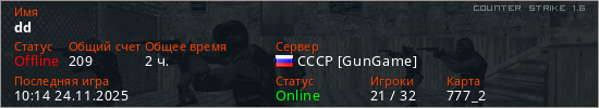 Играет на Counter Strike 1.6 сервере. Страна: РоссияПервый раз замечен 12:06 28.05.2023