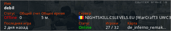 Последний раз был в сети 2 дня назад Игрок с таким ником замечен на 27 серверах