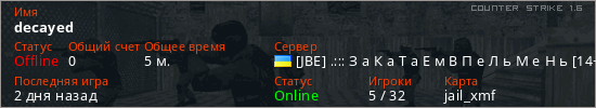 Играет на Counter Strike 1.6 сервере. Страна: УкраинаПервый раз замечен 21:05 15.04.2026