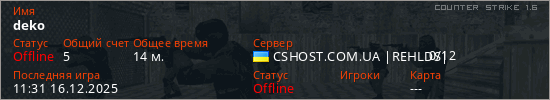 Играет на Counter Strike 1.6 сервере. Страна: УкраинаПервый раз замечен 21:30 14.12.2025
