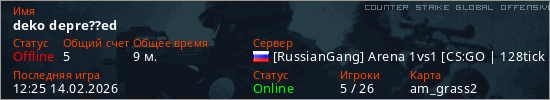 Играет на Counter Strike Global Offensive сервере. Страна: РоссияПервый раз замечен 11:33 14.02.2026