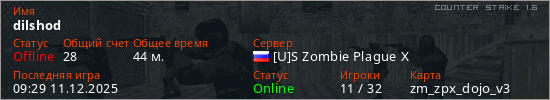 Играет на Counter Strike 1.6 сервере. Страна: РоссияПервый раз замечен 06:58 17.05.2023