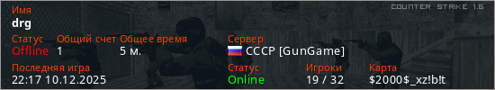 Играет на Counter Strike 1.6 сервере. Страна: РоссияПервый раз замечен 22:15 10.12.2025