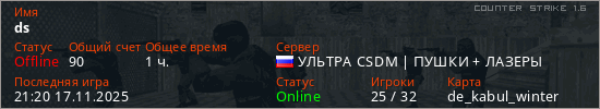 Последний раз был в сети 21:20 17.11.2025 Игрок с таким ником замечен на 28 серверах