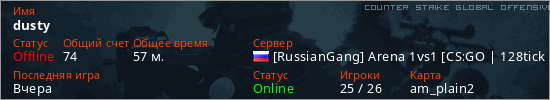 Играет на Counter Strike Global Offensive сервере. Страна: РоссияПервый раз замечен 20:10 18.02.2026