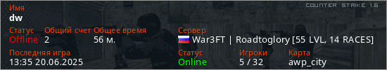Последний раз был в сети 13:35 20.06.2025 Игрок с таким ником замечен на 21 сервере