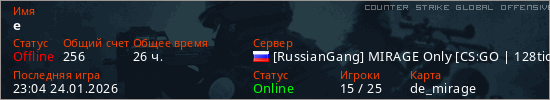Играет на Counter Strike Global Offensive сервере. Страна: РоссияПервый раз замечен 14:54 27.10.2024