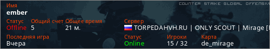 Играет на Counter Strike Global Offensive сервере. Страна: РоссияПервый раз замечен 09:31 27.02.2026