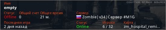 Последний раз был в сети 2 дня назад Игрок с таким ником замечен на 65 серверах