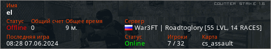 Играет на Counter Strike 1.6 сервере. Страна: РоссияПервый раз замечен 09:00 04.02.2024