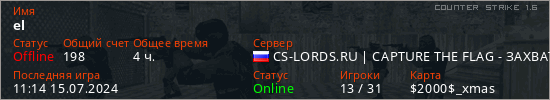Играет на Counter Strike 1.6 сервере. Страна: РоссияПервый раз замечен 05:25 20.09.2021