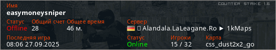 Последний раз был в сети 08:06 27.09.2025 Игрок с таким ником замечен на 8 серверах