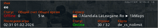 Последний раз был в сети 02:31 01.02.2026 Игрок с таким ником замечен на 30 серверах