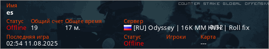 Играет на Counter Strike Global Offensive сервере. Страна: РоссияПервый раз замечен 14:24 19.04.2025