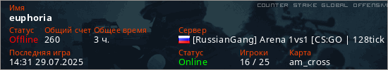 Играет на Counter Strike Global Offensive сервере. Страна: РоссияПервый раз замечен 17:29 29.03.2024