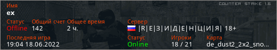 Играет на Counter Strike 1.6 сервере. Страна: РоссияПервый раз замечен 19:35 18.03.2019