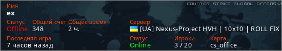 Играет на Counter Strike Global Offensive сервере. Страна: УкраинаПервый раз замечен 05:17 01.02.2026