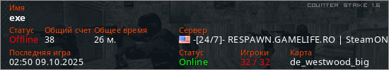 Играет на Counter Strike 1.6 сервере. Страна: СШАПервый раз замечен 03:38 15.02.2025