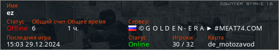 Играет на Counter Strike 1.6 сервере. Страна: РоссияПервый раз замечен 00:49 27.04.2023