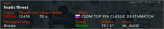 Последний раз был в сети Вчера Игрок с таким ником замечен на 23 серверах
