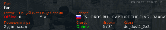 Играет на Counter Strike 1.6 сервере. Страна: РоссияПервый раз замечен 17:14 07.12.2025