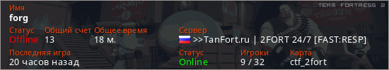 Играет на Team Fortress 2 сервере. Страна: РоссияПервый раз замечен 10:36 21.02.2026